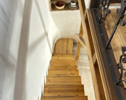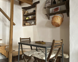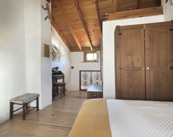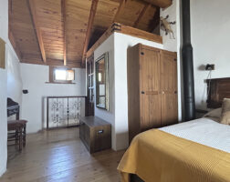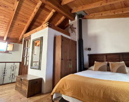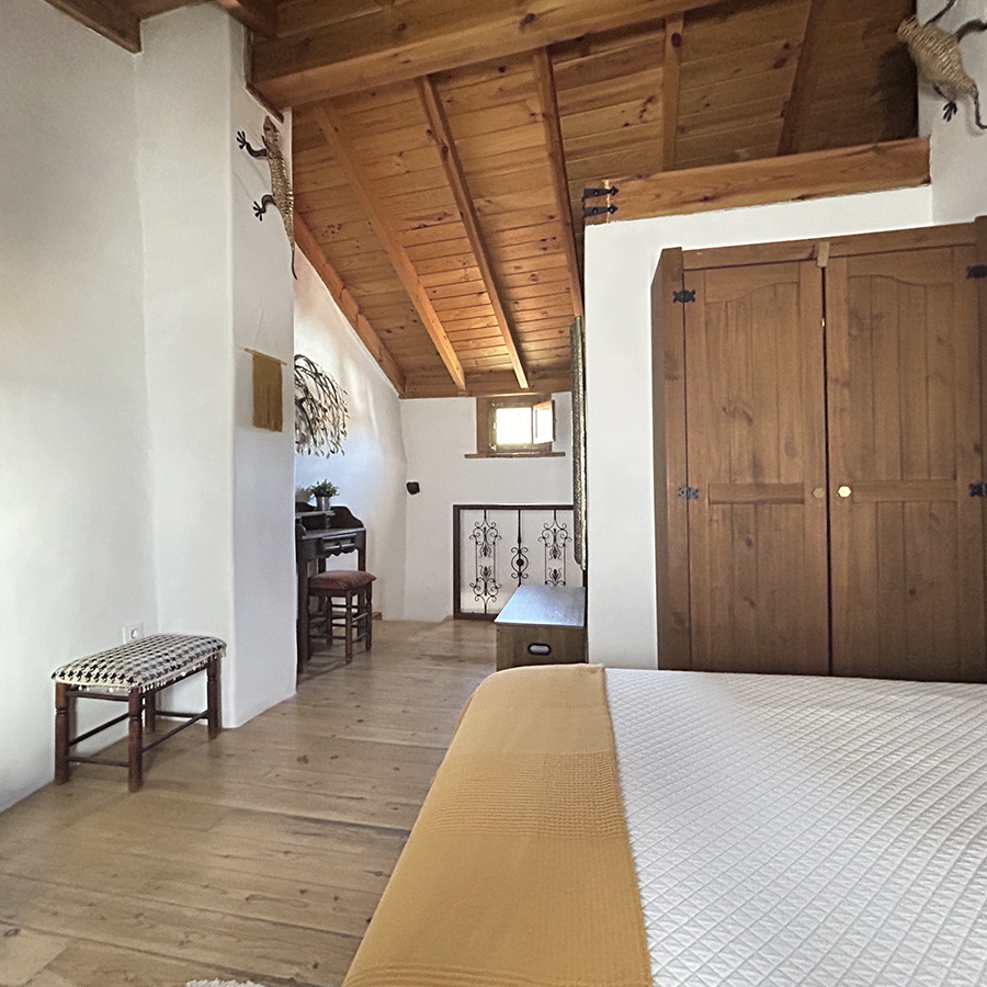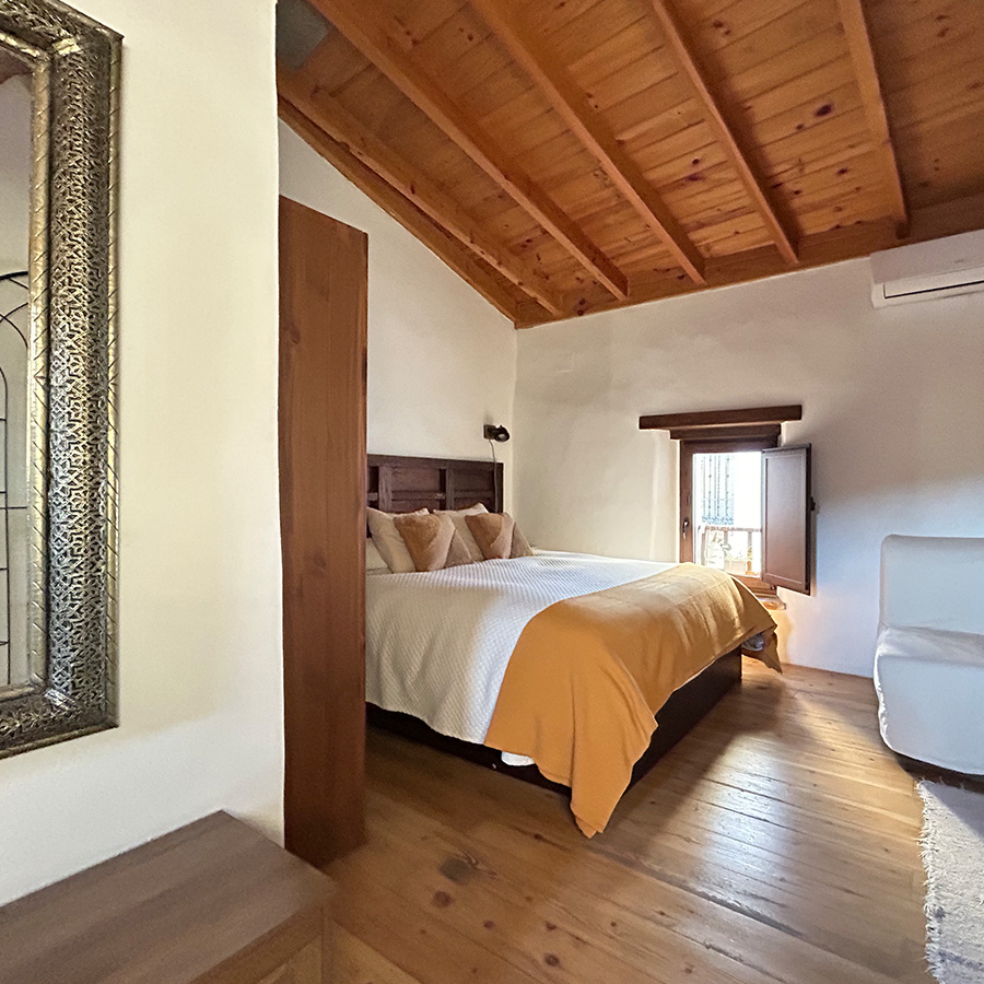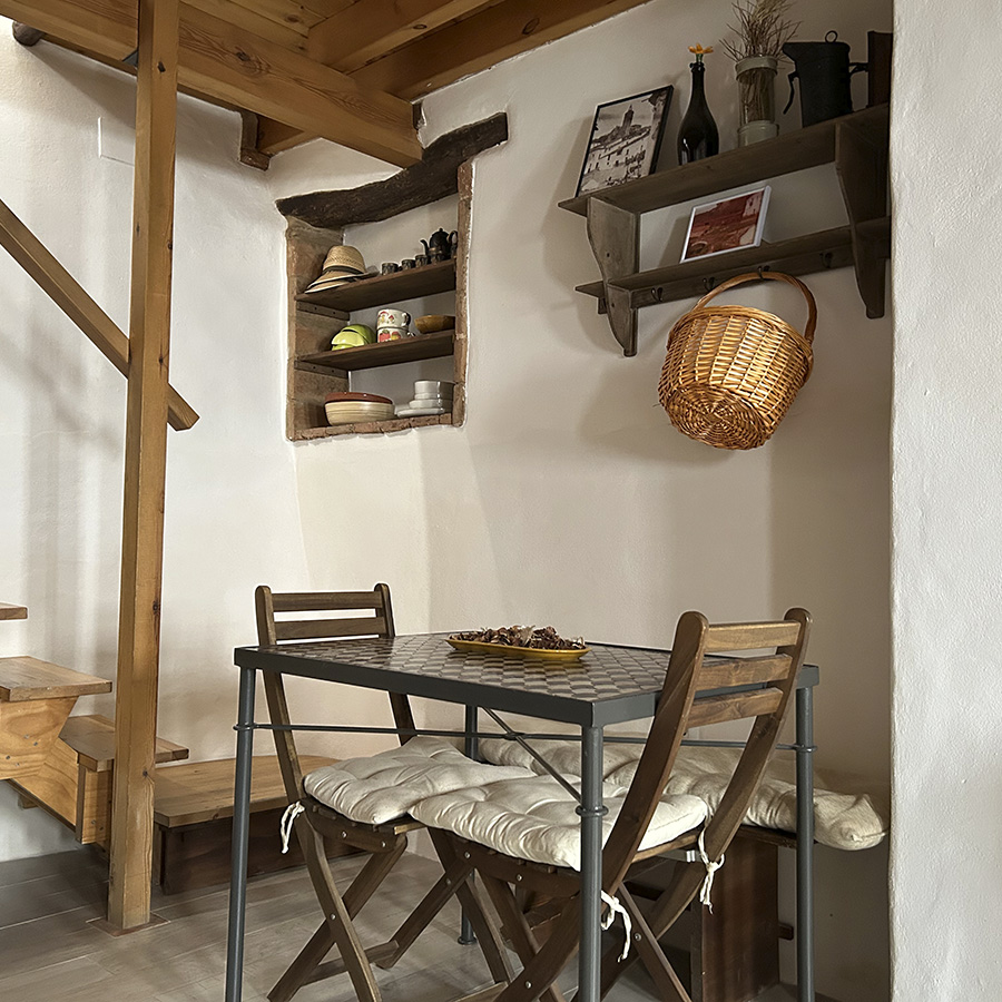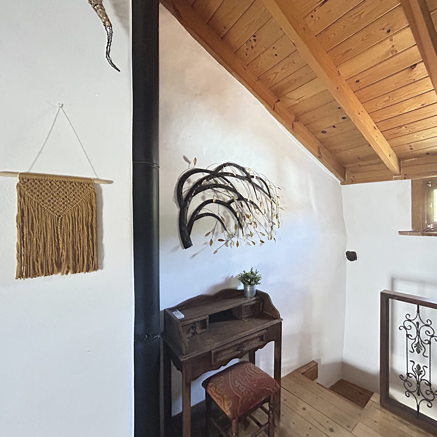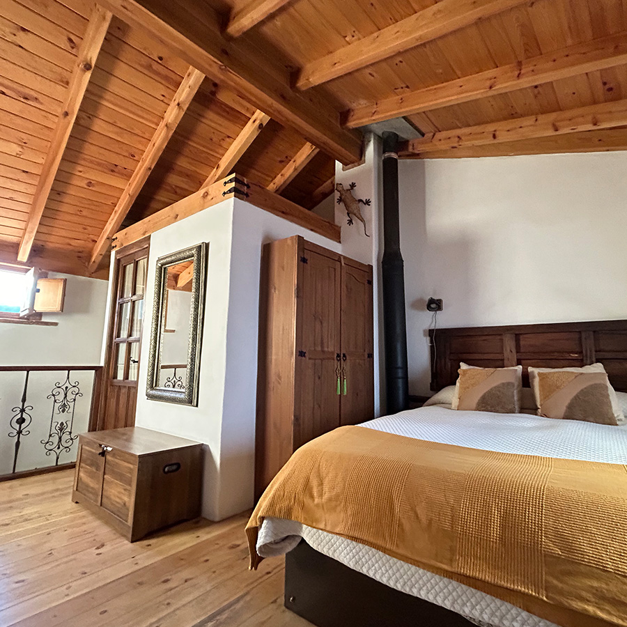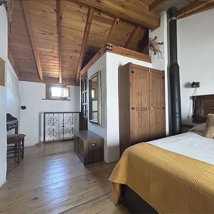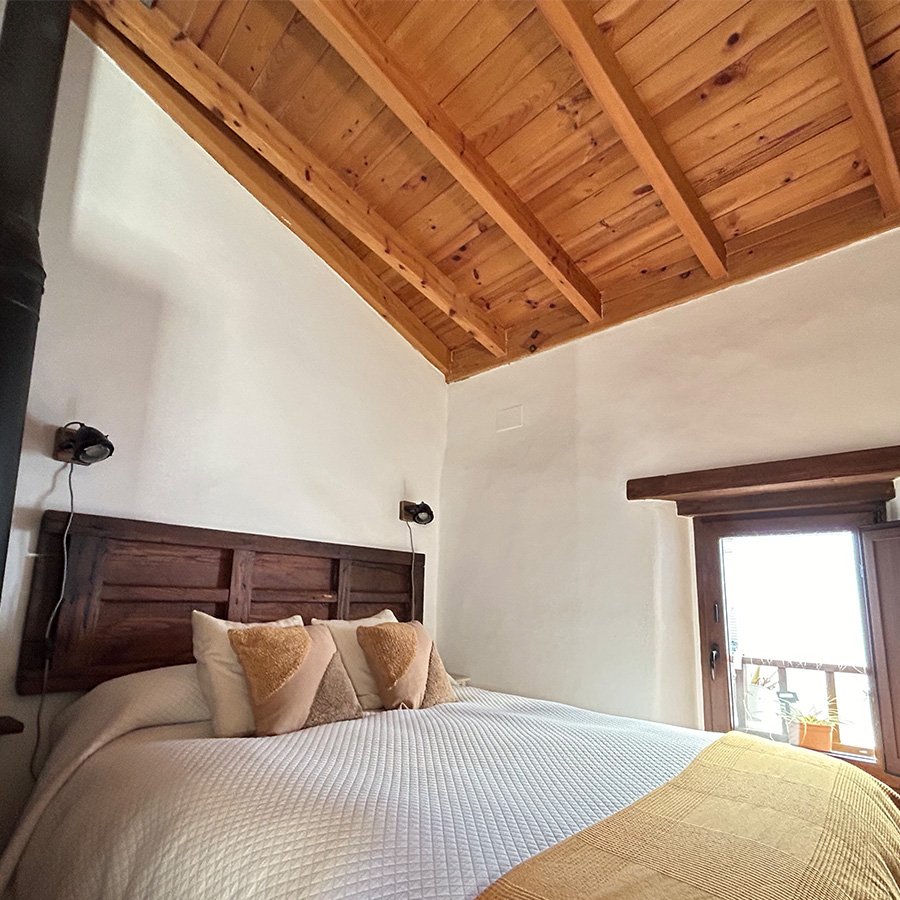 La casa fue reformada en 2014 respetando la arquitectura tradicional serrana: se han conservado los muros originales, los techos de madera, el forjado y los dinteles de castaño, logrando una integración total con el entorno natural.