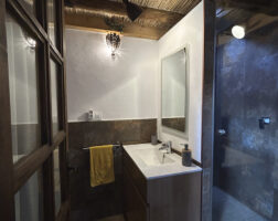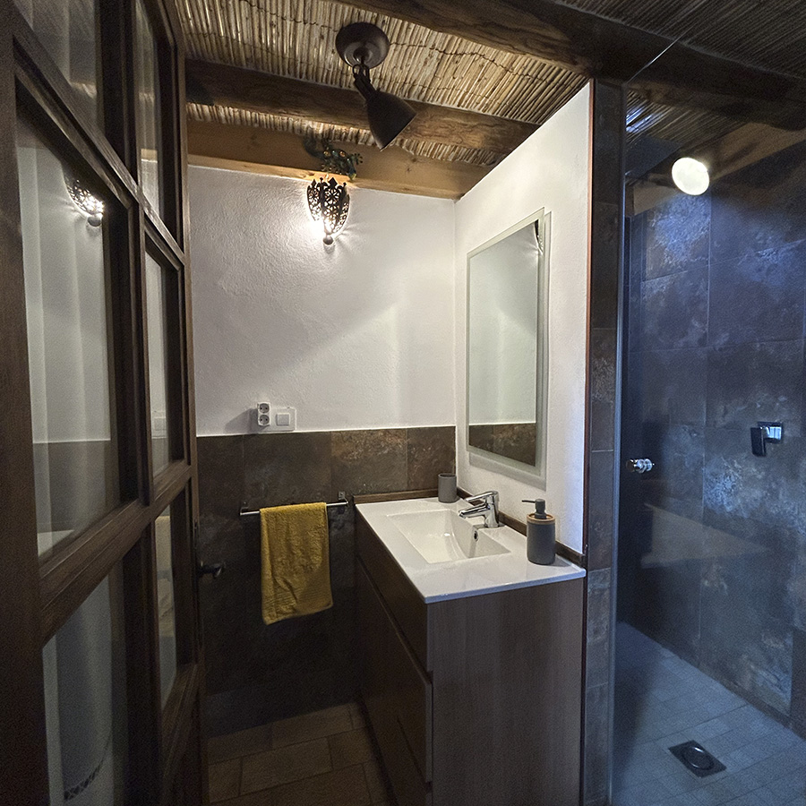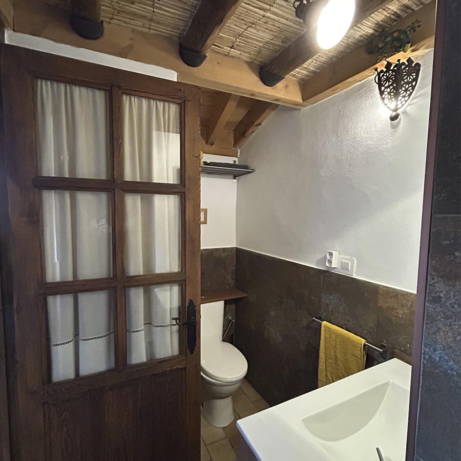 Water, lavabo, plancha, secador, calefactor (en temporada) ducha con alcachofa efecto lluvia y toallas. El baño dispone de jabón y champú.